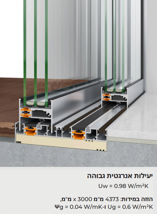 - אפשרות לזיגוג משולש )עד 46 מ"מ( וזיגוג כפול )עד 36 מ"מ(