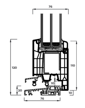 עם רוחב חזית כולל של 120 מ"מ, עם DM כניסה צדדית 76